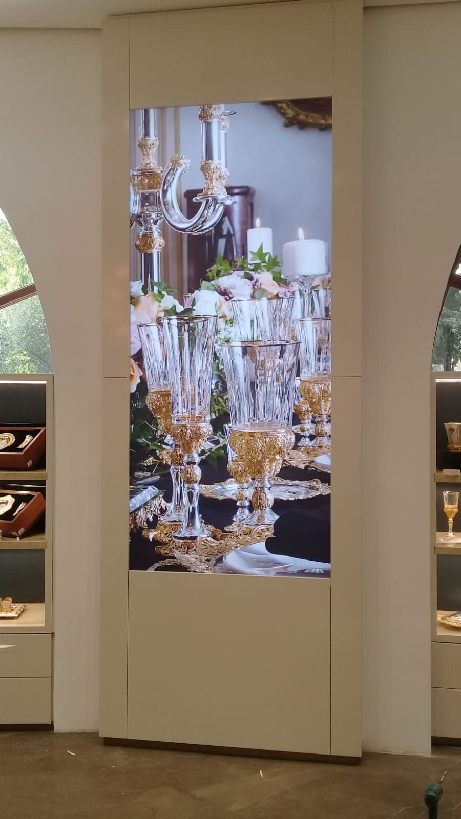 חנות בוטיק YM במתחם מלון וולדורף אסטוריה בירושלים. העיצוב מתחשב בכלי היודאיקה המיוצרים בחברה ובאופיים המאוד מסורתי.
